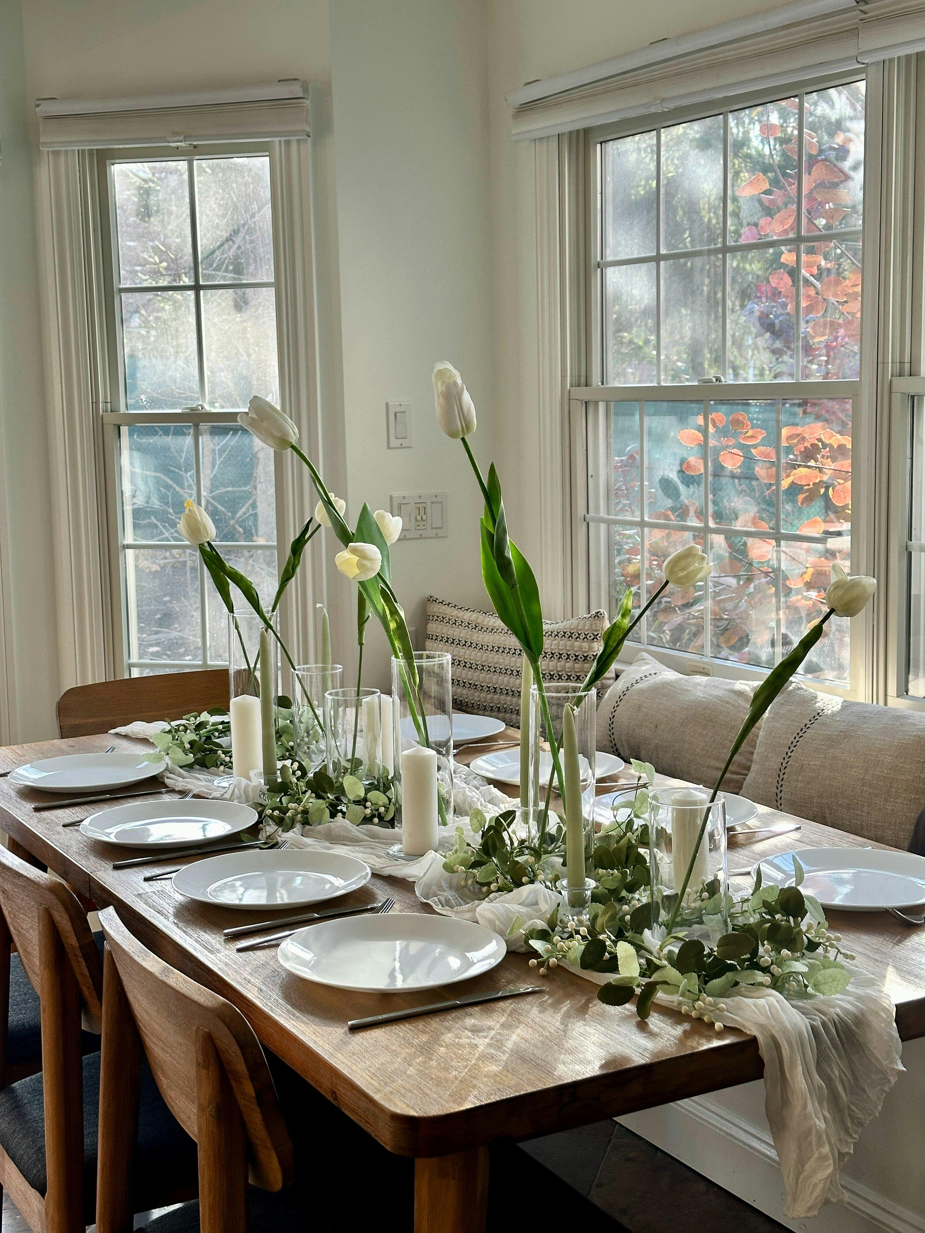 Please note: The photos show a full table setting for styling inspiration. This set includes only the centerpiece items listed above — dinnerware, linens, and other accessories are not included.